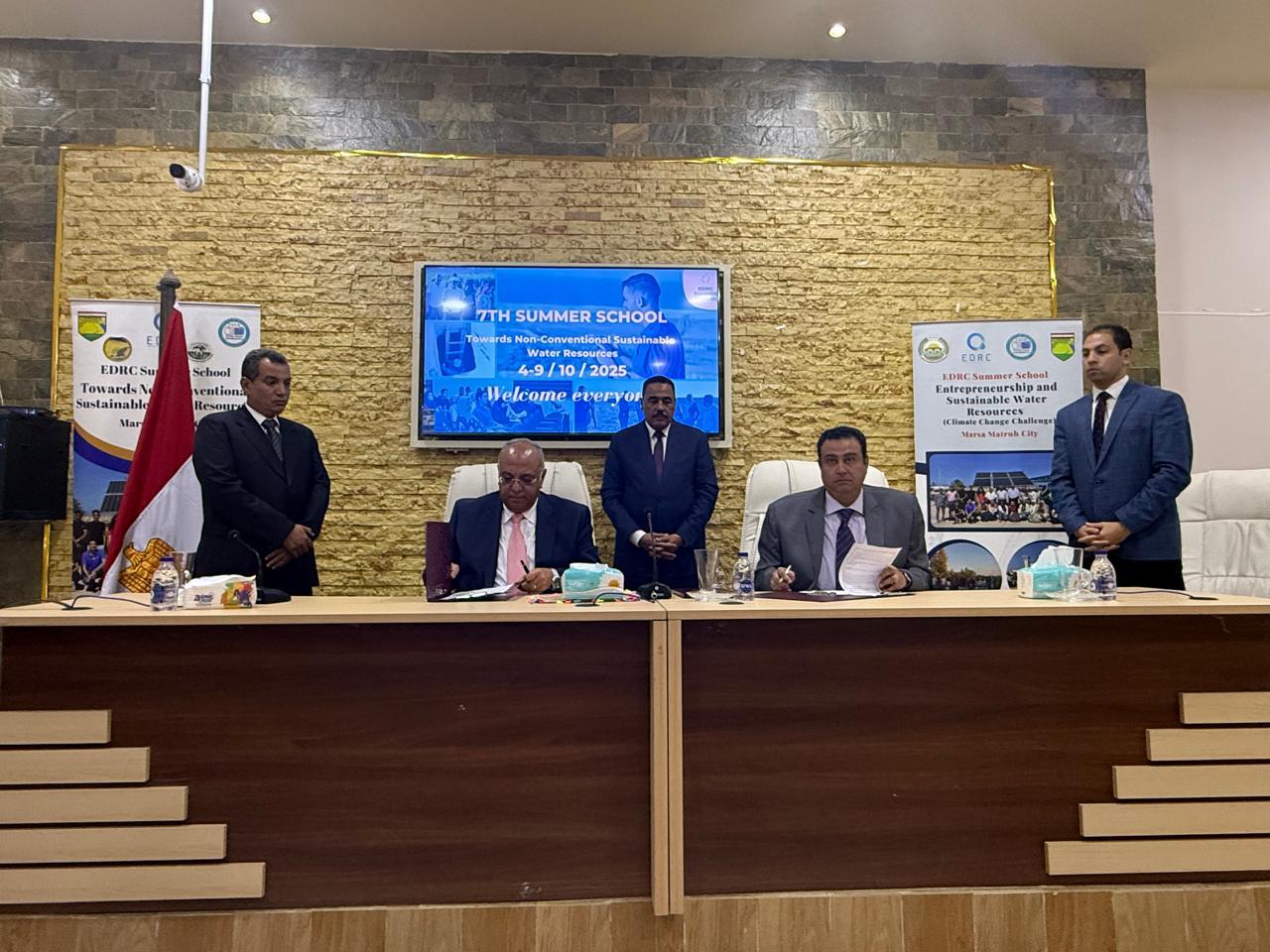 شهد مركز التنمية المستدامة لموارد مطروح التابع لمركز بحوث الصحراء توقيع بروتوكول تعاون مشترك بين مركز بحوث الصحراء وجامعة مطروح، وذلك تنفيذا لتعليمات السيد علاء فاروق وزير الزراعة واستصلاح الأراضي، وبحضور اللواء خالد شعيب محافظ مطروح، حيث وقع البروتوكول كل من الدكتور حسام شوقي رئيس مركز بحوث الصحراء، والدكتور عمرو أحمد المصري رئيس جامعة مطروح، وبمشاركة المهندس محمود الأمير مدير مركز التنمية المستدامة لموارد مطروح، والذي أكد على أهمية هذا التعاون في تعزيز جهود التنمية البحثية والعلمية في المحافظة، وربط الأبحاث العلمية باحتياجات المجتمع المحلي.