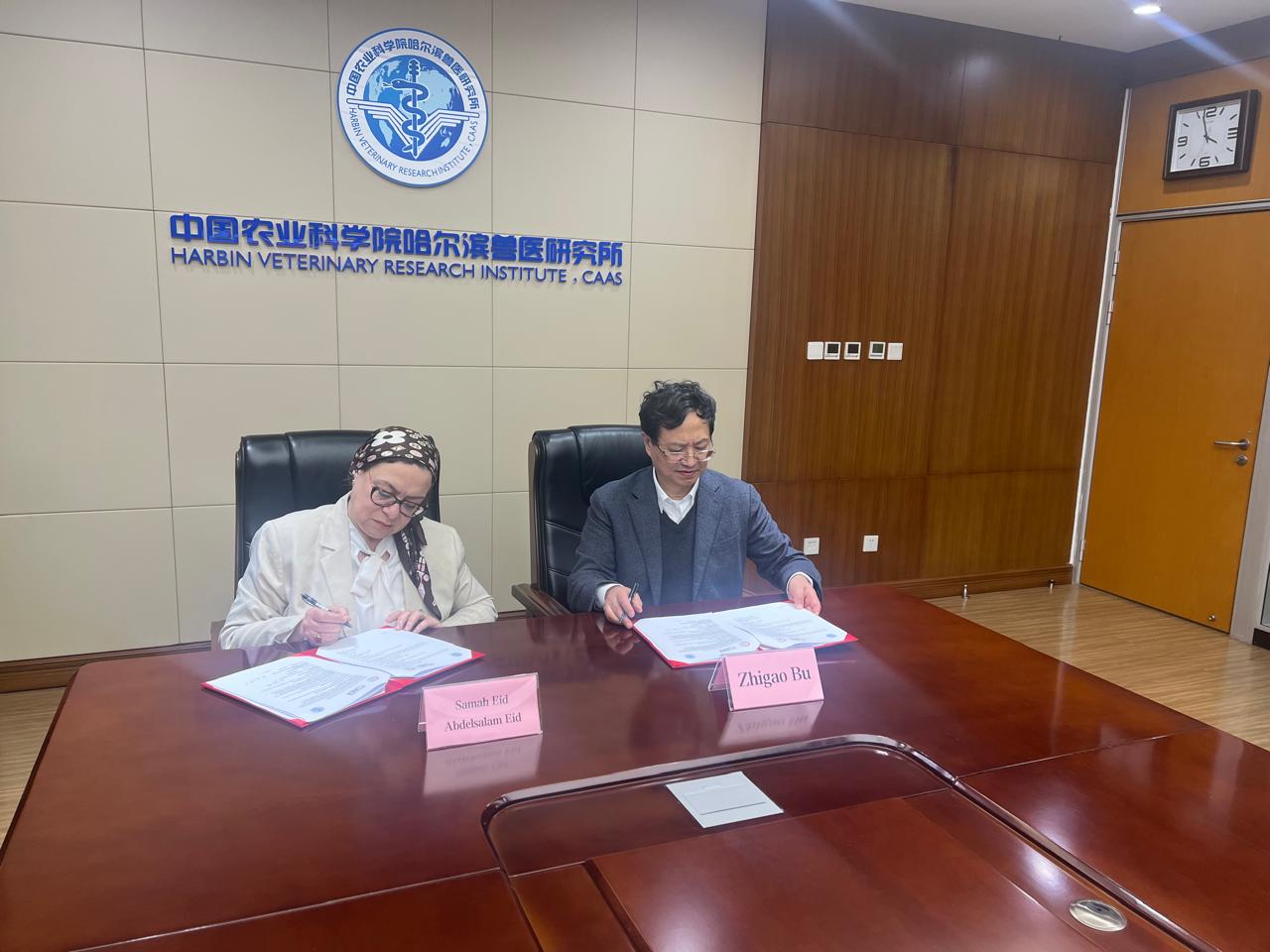 ووقعت المذكرة عن الجانب المصري الدكتورة سماح عيد، مدير معهد بحوث الصحة الحيوانية، وعن الجانب الصيني الدكتور بو زياجو، مدير معهد هاربين، حيث جرى التوقيع في الصين خلال زيارة الوفد المصري، لتعزيز التعاون المشترك، والاطلاع على الإمكانيات التي يمتلكها المعهد الصيني، بما في ذلك معامل الأمان الحيوي بالمستويين الثالث والرابع (BSL-3 و BSL-4) التي تضم أحدث التجهيزات العالمية.